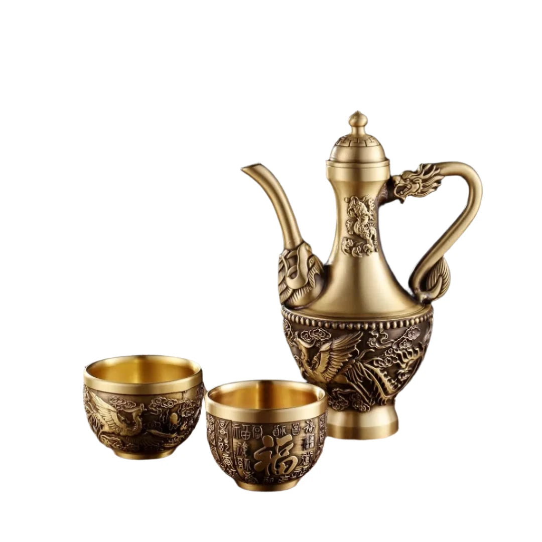 Dragon and Phoenix Chengxiang Hip Pot - Exquisite Pure Brass Tea Set for Elegant Decor